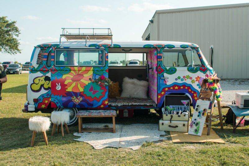Hi! I’m Franky, the big sister – a 1970 VW Westfalia camper van. I love to embrace my inner flower child; as a matter of fact, step in and see my flower ceiling and boxwood walls. I am so excited to be a part of the celebration you’ll never forget!
